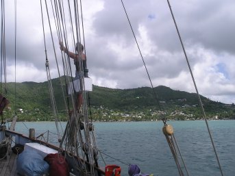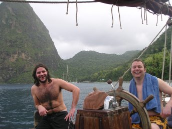 Antigua to St Lucia ![]() Having said a fond goodbye to all on Antigua, and seen Guy off back to England, we left towards St Lucia on 8th Jan, held up slightly by the recurrance of an issue at the top of the mast, which we had to have re-welded and strengthened. ![]() Crew was now down to five - Noel and Jo, Rob and Merryn and Maurice on board, and we made good progress down to St Lucia in three days in order to meet our next set of friends due to arrive on the 11th. After waving goodbye to Si and Phil in Antigua we headed out of English Harbour towards Guadeloupe, making good progress under just staysail and main, which we soon reefed as the wind increased and then reefed again at lunchtime. A happy event for Jo was the removal of her plaster cast after six weeks, with Noel playing doctor using a hacksaw blade. ![]() We arrived in Deshais, Guadeloupe before 4pm, anchoring off the beach and venturing into town to find a good feed in a French restaurant, finding it strange to be back using Euros and speaking French. ![]() The next morning it was another early start headed onwards to Dominica, starting off with all the sails up whilst behind the wind shadow of the island, but getting going well between the islands, managing a consistent 7-8 knots and up to 8.4 knots at one point, although we all got thoroughly wet in heavy showers. ![]() We arrived in Castaways Bay, Dominica at around 5pm and stayed aboard that night, since we planned to get up early the next day - and we watched a spectacular sunset from the boat. ![]() As we headed off for Martinique the next morning under full sail, we had an escort of small dolphins for a while, and again the wind picked up as we got out from behind the island, sending us along at 6-7 knots until after lunch, when we went behind Martinique and had light variable winds again. We motored into Fort de France, which is in a huge bay, and anchored close to the old fort. ![]() A thoroughly unsuccessful evening ensued, first being boarded by customs for an hour, which involved form filling and lots of poking around the boat, then having finally got ashore after a heavy shower, we wandered the streets for about an hour looking for a nice place to have a drink, but somehow we were unable to find anything apart from a run down and dirty bar full of strange old people. Having endured a quick beer, we finally found somewhere slightly better, but we certainly missed the main night life area ! Back on board for a late dinner, then up early again the next morning for the final run down to St Lucia, where we arrived between the Pitons by lunchtime. ![]() After delivering Maurice safely to Mary in her hotel at the Pitons, off we went to pick up our next guests - Ben, Jason and Lucy from the airport and that evening enjoyed a fabulous meal at the Jalousie Hilton hotel near to where we were moored. ![]() After some time spent relaxing on the boat and snorkelling in the beautifully clear water in the deep natural harbour, we went to Soufriere for the night and then on to Rodney Bay, where after anchoring in the usual way we headed ashore, only to be pulled out of the bar a little while later since the boat had dragged the anchor in the gusty wind and had actually hit another boat! Luckily all was well in the end and damage was very slight to all parties, nothing that a bottle of rum and many apologies couldn't mend. ![]() After a somewhat sheepish exit from Rodney Bay we stopped in again at the Pitons to say goodbye to Maurice and Mary, and were headed off again towards St Vincent when about 15 minutes into the journey, there was a POP! and the engine room was suddenly full of smoke! After some frantic running about a burst exhaust box was diagnosed, caused by a cooling failure melting the box. We limped back into Soufriere with the boat billowing exhaust fumes, and spent the next day removing the offending exhaust, which unfortunately involved removing the gearbox first. A day spent running about trying to get it fixed eventually culminated in getting someone to make up a new one in fiberglass, which wouldn't melt in the event of another cooling failure, but would take 2 days to make, followed by another day refitting it - meanwhile we enjoyed the quality snorkelling off the reef right next to the boat, and made friends with the local sea ranger Norbert, who demonstrated how to drink two thirds of a bottle of vodka in an hour and still make sense. ![]() ![]() Our extended stay in St Lucia also allowed us to go for a walk to see the waterfalls take the dingy on a trip to a local deserted beach and take a local boat ride close in to the coast to see all the local villages, and enjoy several good sunsets from the deck. ![]() ![]() ![]() Having only a few days left with Ben, Jason and Lucy and having been unable to do much sailing due to our mechanical problems, we set off to do a three day round trip to Bequia, Mustique and St Vincent, returning to St Lucia in time to catch their flights. We went out in Bequia, where Lista Light had spent some 15 years with a previous owner, and ended up in a local bar where the lady kept complaining that she wanted to go home every time that we bought another round of drinks. There was plenty of pool playing with a few locals, one of whom claimed to have been one of the pirates in 'Pirates of the Carribean', since the film was shot in Bequia and St Vincent. We were also very pleasantly surprised to see a boat very similar to Lista Light, and when we went to speak to them the Norweigan boat builder on board said that his cutter was built in pretty much exactly the same place in Norway, a few years later. ![]() ![]() Assisted by a good strong breeze, which turned into a downpour, we made Mustique just before dark. ![]() Mustique, home of the rich and famous, was certainly different from the other islands with its manicured lawns and facilities, but would not be completely seen without a quick visit to Basil's Bar in the evening. ![]() ![]() 