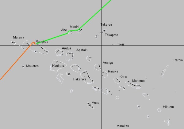 Marquesas to Tuamotu Before leaving the Marquesas, we got a weather forecast (for once!) both from Richard via his SSB radio, and the internet, and both showed favourable (Easterly to South-Easterly) strongish wind (15-20 knots) for the 4-5 days of our passage, which was good to know and exactly what gets Lista Light going along well. We weighed anchor early on the 17th June and headed out of Tahiohae Bay, immediately feeling the wind as we cleared the land and raising the mainsail, staysail, mizzen and medium jib for a broad reach which gave us a comfortable 6-7 knots. The wind was fairly constant and the sailing good until around dawn the next morning, when it eased off to the point where the engine was required for a while, but a few hours later we were off again at 5-6 knots, which is where it stayed for 48 hours. It was slightly more effort with just four of us, our overnight watches being 2 people on for 4 hours, off for 4 hours, but it wasn't uncomfortable with some extra sleep top-up during the day as we went. We also changed our normal one hour on, three off rotating day steering rota to a two hour shift, which gave us six hours off in the day and a bit more time to get things done between watches. Following the recent hair chop theme, Merryn got her scissors out again and attacked Jay, and Rob busied himself with his grooming, in keeping with his posh new look. ![]() ![]() The weather stayed clear and sunny, and the wind kept on blowing - perfect sailing weather, but by the 20th we realised that we were making time too well, and that we would arrive early for the correct tide state for entry into the lagoon through the pass. The wind freshened a little and we ended up running under double reefed mainsail alone, trying to slow our progress! The fresher wind also carried squalls and some heavy rain too, and we started to think that the sea would be too big to attempt the passage into the lagoon at all, and changed course for Ahe, where the pass is more protected and the sea would hopefully be calmer by the time we arrived there. We also had one minor disruption of another steering cable snapping whilst Merryn was on night watch, fortunately Rob had crafted a slightly better emergency tiller than the one we had previously used whilst crossing the Pacific as the seas were a lot bigger. The decision was made to fix it there and then so that we could make it to the atoll at the right tide window, and because steering 35 tons worth of boat isn't that easy with a tiller, so Rob hung over the side harnessed on whilst Jay fed the new cable through and Mike and Merryn took it in turns to steer. Merryn commented that it would not be the type of task you would like to undertake with a hernia (as one of our friends had done previously on their boat) but as consolation was very excited about the six pack that she would be parading the next day - unfortunately it never transpired and all there was to show was a few bruises! ![]() Apart from the steering cable mishap, all in all it was another good (and lucky) sail for Lista Light; boats who had left a week before hadn't had a breath of wind, and boats who left the week before that had 50mph gales in the Tuamotus! The Tuamotus consist of about 77 atolls and islands stretching over 1000 miles, an atoll being a low lying fringing coral reef built on the remains of a volcano with a salt water lagoon in the middle; the Tuamotu atols range in size from a few miles across to over 50 miles long. The low lying landscape was a sharp contrast to the steep rocky terrain of the Marquesas; in time, as the Marquesan mountains erode and the coral reef around them grows, the relatively young Marquesas will end up being atols similar to the Tuamotus. ![]() There are usually one or more 'passes' in this coral reef that enables boats to enter into the lagoon where it is more sheltered from the ocean waves and there is some amazing coral. The main industry of these atolls is the farming of black pearls from odd little sheds on stilts, with trails of rope holding pearls criss-crossing the lagoon. ![]() There are very strong currents and rips that flow out of the passes in the lagoons depending on both the state of the tide and how rough the seas are outside the lagoon - if the sea is rough the waves spill over the reef in some places filling the lagoon and the easiest way out for the extra water is to rush through the pass. Despite our running repairs and deviations due to the weather, we still managed to arrive slightly before what we had worked out to be the correct time of day to enter the pass, although unfortunately it was also spring tides, which means that the outflow from the lagoon is at its strongest and the seas were also relatively large due to constant 20 knots of wind for the previous 3 or 4 days that we had enjoyed. This meant for a pretty hairy entry into the lagoon - of course this is the highlight of the day for the locals who spectate from the edge of the pass as the novice yachties get swirled around and fight the outflow of the lagoon! We had our trusty engine up at full blast as we inched forward against 6 knots of outflow at the narrowest point, and once through the pass, which is about 500m long, we had to quickly reduce speed to prevent ourselves piling into one of the numerous coral heads. ![]() ![]() The little bits of 'land' around the outside of the lagoon are called Motu's and these are joined by patches of awash coral, together making the outside of the atol. ![]() We carried on around to the south side of the lagoon, and anchored in calm lagoon water behind a large motu for protection, which was a lovely change from the bumpy sea of the last few days. ![]() After a day or two of complete relaxation and solitude, Merryn and Rob ventured to town to have a look around. Although the town itself wasn't anything to write home about, we were very pleased to find a lettuce (the first one for ages!!) in the shop, and we enjoyed watching the l