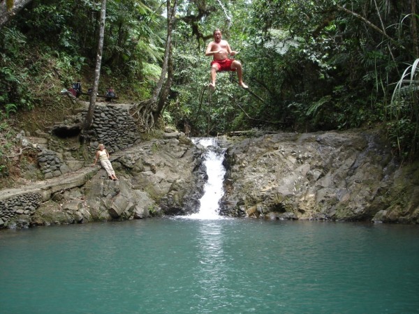 Tonga to Fiji En route to our overnight stop to the west of the Vavau group, we first stopped off at the famous Mariner's cave - a cave entered by swimming down a few meters and along five meters into a rock face. The phenomenon created by the variations of pressure when waves hit the rocks is that a mist forms around you… ![]() ... then completely vanishes as the pressure changes - all very strange ! ![]() The blue light coming into the cave through the underwater passage was impressive, from both on top of the water and underneath. ![]() ![]() After our small caving trip, we carried on to the island of Hunga, where we went through a small pass into the lagoon there - unfortunately the remainder of the afternoon and the next morning were overcast and rainy, but we went for an enjoyable snorkel in the lagoon pass the next morning, still hunting for the elusive whale experience! By 3pm the tide was high enough to attempt leaving the lagoon, and we set off towards Fiji with a light following wind which was just enough to carry us along at a fair speed for an hour or two after we had left the wind shadow of the island. We had got a weather forecast from a friend, and we were expecting SE wind, F5 to arrive, followed by less wind for a day, then NE F6 following a day or so later - the perfect amount of wind to get us sailing along nicely. However, just after midnight the wind swung around a few times, then suddenly got up, and carried on getting up, until we were bowling along with F8 winds, gusting up to 40 knots, with enormous waves and spray everywhere. We had a reef in the main already, but we didn't have time to take any more, since we were trying to gybe as the wind got up and having problems with a caught running backstay - so we had to run under only one reef in the main, which was a lot more canvas than we needed, and a lot to attempt to pull down. A few tired looking birds had landed on deck a little earlier, which is not a common occurrence - we should have taken the hint that there was some bad weather coming ! By 3am, the wind had abated slightly, to F7, but we were left with a big sea and lots of rain, and we were still doing 7 knots with reefed mainsail only. ![]() The high winds, at least F5, stayed with us all day, together with lots of rain and cloud - we all got thoroughly wet and cold ! ![]() The next evening we had more strong winds, up to F7 this time, and zoomed along over big waves again - this time we were more prepared for it and took three reefs in the main before things got too bad. By the next morning, things were looking better and by lunchtime we were going along nicely, with manageable wind and clear, sunny skies. That afternoon we passed through a passage in the reef between Tonga and Fiji, and were helped along by up to two knots of current. The sea had calmed down enough for the fish to see our lures, and we caught a large Mahi-Mahi which was delicious eating for several days. ![]() By midnight the wind had died enough to require engine, and the next day was hot and sunny, with very little wind - it was so hot the boys had to jump into the sea and act as shark-bait on a rope. ![]() The other entertainment of the day was passing the international date line (or where it should be anyway - 180 degrees West/East). This meant that we had travelled exactly half-way around the world since leaving England, taking 15 months and travelling somewhere in the region of 15,000 miles at an average of 5-6 mph! Although we felt Neptune didn’t deserve much in the way of offerings after the weather we'd had a few days before, we gave him a can of beer over the side to show willing, and then carried on with the arduous tasks of the day. ![]() The last night of the passage was fairly dull and windless, with the odd squall and torrential rain to keep us on our toes. The GPS, which is mounted outside near the wheel so that we can use it to aid steering, finally gave in to the heavy rain and got waterlogged, which spelt the end for the display screen, although it can still get a position and we can read it out from the repeater below. We arrived outside Suva harbour just as dawn broke, and came in to anchor near the Yacht Club by 7:30am. ![]() Suva, the busiest Pacific port so far encountered, hardly boasted clear water for swimming, and was jammed full of fishing and cargo ships - the only consolation was that the murky water completely killed all the travelling weed that had grown on the side of the boat! ![]() Rob embarked on the usual entertainment of checking into the country, this time assisted by Cees, and was particularly pleased to award Fiji first place for paperwork required, overtaking Panama as the previous winner. There was Customs to see, requiring five forms to be filled in (all in triplicate with carbon paper of course), requiring full details of crew and the boat, often with the same details required on different forms. Quarantine then arrived, requiring another form and $30, followed by Health and their form; the quirk being that in order to pay for the 'health inspection' a taxi ride was required to a building out of town which was two minutes walk from the address given to us so that a receipt could be obtained, the number from this receipt was then required in a different office on the other side of town. Immigration was then visited, in an unmarked portacabin inside a warehouse, requiring all crew details yet again, both on separate forms and a joint boat form. Then came the enjoyment of obtaining a cruising permit, and a taxi ride to another suburb of Suva, where an unlabelled No.17 Richards road was eventually found after asking two people and two trips up and down the road, the difficulty being that the numbers jumped around with gaps of thirty or more between neighbouring houses. Having finally found the correct place, we were told that the office of Fijian Affairs had moved to a new office building three weeks previously, so back to town to finally 