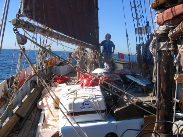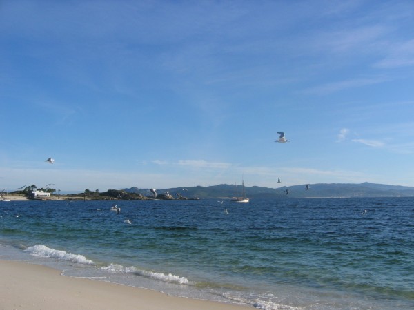 A Caruna (Spain) to Oporto (Portugal) September 28 We say goodbye to Carole, Lucy, the Land Traills and the various animals and board the ferry bound for Santander. Dan joins us with his violin and we finally reach Lista and Clare in A Coruna on September 30. ![]() After a couple of days of repair and jobbing, with Clare and Dan madly flying around the city with a trailer behind their bikes on a quest for gas, we leave. We have grown to know La Coruna fairly well, Dave and I have run to the famous lighthouse, Torres de Hercules a couple of times, woven our way through the miniature Stonehenge and passed the sea horn. Clare and Dan have meandered the streets and plazas. Dan is chatting in Spanish and Clare has met Germans, American Spaniards and finally a Danish trio whom she sailed to Portugal with. ![]() We leave Coruna on Northerly winds, keen to sail passed Cabo Finisterre before the winds move to the south. After more than a month on land my stomach does its familiar lurch as we crash into the waves and I quickly view lunch again, mashed up in a bucket. Dan is hardier than me, but does manage to bring up super, which he describes as not too bad a sensation with soft pasta puke, followed by a rather tasty caramel gold bar mush. ![]() I writhe incompetent in bed. It’s a different world below deck. Luckily, once I am flat on my back nausea generally passes, but the creaks and groans are amplified in surround sound. As we swing from side to side, glasses and bottle smash, food frees itself from lockers and books hurtle to the ground. Canvas and wood shriek in unison and I try and work out where each noise is coming from. The sink gurgles its background symphony and light flickers through the windows. At one point I think I can crawl up on deck and then notice that sea and sky are swishing in a helter-skelter passed the port holes and change my mind. I eat a nectarine but later throw that up, sleep descends. ![]() Clare has a stomach of lead. Even on the roughest of seas she has not experienced a pang of sea sickness. Un-phased she plunges into the galley to cook supper while the oven and sink rock by her head. Steadying the pans with her elbow and the chopping board with stomach she concocts omelettes to die for. ![]() By the morning I feel fine and sit up on deck with Dan. He plays haunting tunes on his violin or plucks melodies on the guitar. I chant Spanish verbs and gaze out to sea. Suddenly a dolphin jumps from the waves. I scream and before we know it, lines of dolphins are surfing through the waves and weaving in our wake. A huge school of what appears to be up to one hundred common dolphins follow us. I watch seven sail on a wave by our side and then dart under Lista. They keep coming and swim with us for some time, before disappearing into the waves. I can’t imagine how you count dolphins? There must be a method, I shall look into it and report back. ![]() An uncharacteristic dark bird glides above us. On investigation it appears to be a pomarine skua ![]() I read, ‘Colour’ by Victoria Finlay. It belongs to a very special friend of mine, who similarly adores and coverts good literature. I was due to return it to her some months ago as I have been reading it probably since May, disgraceful. Things have got between me and the pages, however: a wedding, leaving work, preparing for the trip, a new life, new language and learning how exactly to sail and exist in our new swimming snail shell. But every time I dive back into the pages, I am transported into an exotic journey on the quest for sacred colours that have shaped and dashed empires. It is intriguing in content, fact, history, landscape and place. I am hooked and want to read it all over again already. I will of course now have to contrive a plan to return it to its rightful owner. There are several options; post it, send a replacement copy or lure the said, enigmatic individual to the book.... Meanwhile I shall cherish the pages of the paintbox until its return. ![]() The Islas Ci’es rise up before us. They are grey craggy topped islands swathed in forests with white sandy beaches and a green lagoon. We anchor between Islas del Norte and Islas del Faro. We contemplate paddling to shore, but fatigue takes over and we all slink to bed. ![]() Saturday 4 October Dan dives into the sea and swims after Clare rowing to the islands. The whole area is a Nature Park, with the three main islands also designated as bird sanctuaries. They are exceptionally unspoilt with only one white concrete bar block on the bay. Ferries glide over from the metropolis of Vego on the mainland to the East and dump day trippers off to walk the islands and sit sipping ‘los cafe’ cortado’ (jet black thimbles of coffee that you could prop your spoon up in). ![]() By early evening (6.30ish) it’s getting cold but we’re determined to swim to the island and jump in to the icy water. The water is dark green and cloudy. It feels fantastic to be sluicing (um, crawling) through the water. I love swimming in the open, it makes me want to do triathlons. I think of our mate Leano and his mad swimming dashes in Cornwall at New Year or the multi races he’s been competing in, I could get hooked. I imagine I’m in ‘the Beech’ as we swim to our desert island. Interestingly, this is the one environment that our fearless skipper does not feel so comfortable in. Images of sharks streaking up from the deep or fins swishing passed unsettle the old kipper. ![]() We pull ourselves on to the beach and then run through the golden sand. A thousand gull’s feet splatter the sand, an appropriate image for our mission. Four fluffy waders streak passed. The island is designated for its colonies of lesser black backed gulls, herring gulls and shags. We decide to return early tomorrow and check out the inhabitants properly. ![]() At night Vego glows, a galaxy of yellow twinkling lights above the rias in the distance. I chuck water overboard and weak phosphorescen